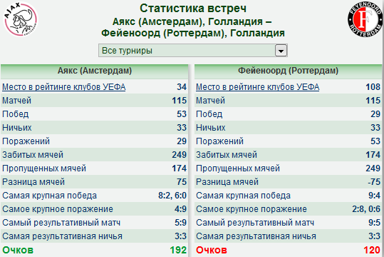 Анализ и прогноз: Итак матч 10 тура Чемпионата Голландии между соседями по турнирной таблице. Аякс безусловно ослабил свой потенциал по сравнению с прошлым годом, но напомню клуб уже довольно долго не проигрывал на своем стадионе. 2 ничьи должны гнать Амстердамцев вперед, какие же низкие коэффициенты на то что будет забито более 2,5 мячей, обе забьют, победа Аякса. Ну в принципе тут нельзя не согласится. Потери в клубах минимальны, поэтому это не должно отразится на игре. Ван дер Вилл лишь вызывает вопрос, отмечен травмой, но входит в предварительный состав, нелепица. В лбом случае Аякс должен здесь добывать 3 очка и догонять АЗ. Фейенорд на выезде еще не уступал с разницей в 2 мяча, но и побеждал только аутсайдеров. Еще обратил внимание на угловые - Аякс команда подающая и Реалу отгрузили и Загребу, ТБ 9 должен заходить свободно, тут еще Фейноорд поможет :)