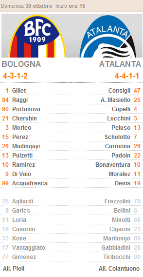 VS Футбол. Чемпионат Италии. Серия А. 10-й тур.. Начало - 16:00 по Киеву. Главный судья - Мауро Бергонци Доброго времени суток. Предлагаю рассмотреть матч 10-го тура итальянской Серии А - "Болонья - Аталанта".