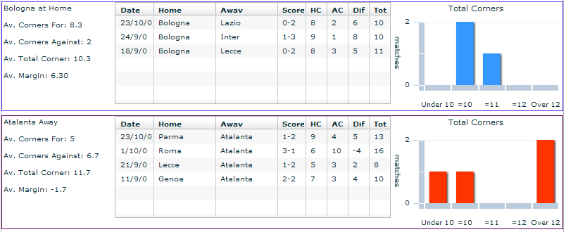 Анализ и ставки : Итак, в этом матче встречаются Болонья, которая находится не в лучшем состоянии и открытие сезона - Аталанта, которая в прошлом туре сыграла вничью с Интером. На поэтому матчу мне видится 4 ставки: 1)Аталанта отлично играет на выезде, за 4 гостевых матча новичок Серии А проиграл только один матч (3-1 Роме), также в активе команды 2 победы и 1 ничья. Болонья же за 3 домашних матча набрала 0 очков, безвольно проиграв все 3 матча, притом забив в них только 1 гол. Также за последних 4 матча на поле Болоньи 2 раза была ничья и по одной победе имеют команды. Исходя из этого всего неплохая ставка Ф2(0),но мне кажется, что вероятность ничьи в этом матче выше, чем любого из исходов, поэтому риску и поставлю Х. 2)"ИТБ2(1)" - Аталанта регулярно забивает, а Болонья также часто пропускает, лички также в помощь. В голе Аталанты не сомневаюсь, а там как пойдет. 3")ИТБ углов Болоньи 5.5" - предполагаю, что матч будет развиваться так, что хозяевам придётся атаковать, то есть будет подавать углы. Статистика в целом за эту ставку. Болонья в этом сезоне дома меньше 8 не подавала, а соперники Аталанты в гостевых матчах, только раз не пробили это тотал. 4)"Победа Болоньи по углам с форой -1" - опять же статистика. В среднем Болонья дома подает 8.3 угла за игру ... соперники 2. Имхо сегодня будет что-то в этом роде. Также соперники Аталанты эту фору не пробили только в одно матче (в проигранном матче в Риме).