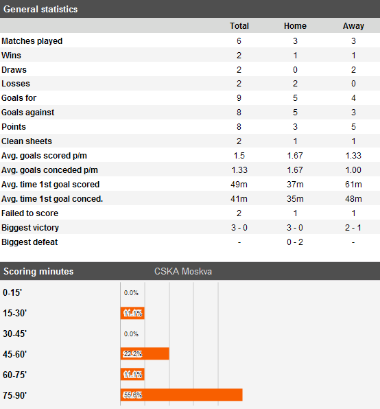 Подробная статистика команда в текущем розыгрыше Лиги Чемпионов ЦСКА