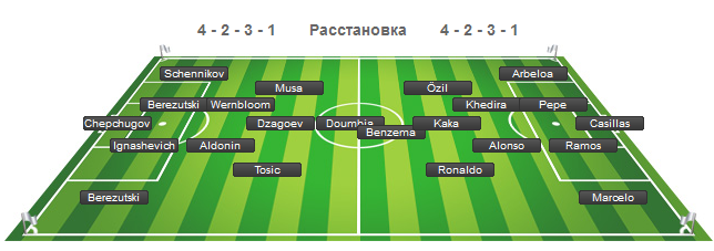 Последние матчи ЦСКА : 16.02.12 ЦСКА М - Шахтер Дн 2:2 (1:1) 09.02.12 ЦСКА М - Тимишоара ФК 2:0 (1:0) 06.02.12 ЦСКА М - Кр. Советов 1:0 (1:0) 03.02.12 ЦСКА М - Гуанчжоу Эвергранд 0:1 (0:0) 30.01.12 ЦСКА М - Видеотон 1:0 (1:0) Последние матчи Реала : 18.02.12 Реал М - Расинг 4:0 (2:0) 13.02.12 Реал М - Леванте 4:2 (1:1) 04.02.12 Хетафе - Реал М 0:1 (0:1) 28.01.12 Реал М - Сарагоса 3:1 (1:1) 26.01.12 Барселона - Реал М 2:2 (2:0)