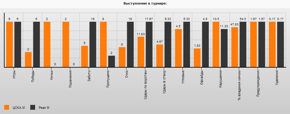ЦСКА Реал Общая статистика команда в текущем розыгрыше Лиги Чемпионов