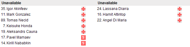 Ориентировочные составы: Травмы:  Анализ и ставки : Лига Чемпионов снова заглянула в Россию, теперь в столицу пожаловал сам мадридский Реал. Учитывая роспись по этому матчу предлагаю несколько ставок: 1)"Исходы" - Скип. Уже много написано по поводу настроений команд на матч, также регулярно можно прочитать про адаптацию Реала к московским морозам и синтетике, все эти факторы конечно очень важны, но в первую очередь надо понимать, что погода погодой, но класс команд сильно разнится. Если смотреть на этот матч, как на часть двух матчевого противостояния, то Реал вполне может и "быковать" сразу, т.к. в этом не особой нужды, всё равно команда спокойно вынесет москвичей дома. С другой стороны не стоит забывать, что "Особенный" 2 года назад приезжал сюда с Интером и выиграл 1:0. Сейчас же в распоряжении португальского тренера более сильный коллектив, но всё же больше склоняюсь в сторону ЦСКА - фора +1 смотрится неплохо. 2)"Тоталы" - Скип. Насчёт тотал одного мнения быть не может - с одной стороны морозная погода, которая склоняет в польщу ТМ-а, с другой - "ё маё", ну рука не поднимается в матчах Реала ставить что-то кроме ТБ. Если исходить из статистики, то оптимальной ставкой мне видится ИТБ2(2) за 1.9 в БС, такому ЦСКА Реал просто обязан отгружать минимум 2 гола. 3)"Обе забьют" - Скип. Достаточно противоречивая ставка, но учитывая домашнюю арену + холода + раскрепощенность Реал, всё же выберу ОЗ. 4)"Удары в створ" - Скип. ИТБ Реала смотрится просто замечательно, можно брать 6.5. По статистике Реал наносил в створ соперников 9+ ударов за матч. Защиту ЦСКА не считаю сверх надежной и 7 ударов Реалу вполне по силам нанести. Ещё раз глянув на стату, увидел, что лучше наверно взять ОТБ, т.к. и ЦСКА в защите сидеть не будет, да и повторюсь, Реал также не безгрешен. 5)"Угловые" - Скип. По статистике неплохо смотрится ИТБ Реал, да и общий ТБ также возможен. Но делаем скидку на первый матч и погоду, поэтому пропускаю. 6)"Офсайды" - Скип. Очень много сказано по оффсайды ЦСКА, и спорить не буду, но учитывая класс мадридцев, пожалуй предпочту ИТБ Реала, общий ТБ на матч. 7)"% Владения мячом" - Скип. ИТБ ЦСКА, почему бы и нет? По статистике 43% для армейцев немного, да и Реал в гостях мяч может отдать. Предполагаю, что большинство времени Реал будет вести в счёте, поэтому ИТБ москвичей вполне возможен. 8)"Фолы" - Скип. ИТМ Реала. Мадридцы учитывая поле не будут особо лезть в стыки, т.к. на тяжелом поле легко получить травму, а она и не нужна. Также не вижу причин драться за каждый мяч, это же не финал, да и соперник не принципиальный. 9)"ЖК" - Скип. По ЖК ситуация неоднозначная - Реал получает много, ЦСКА - мало. Учитывая важность матча для москвичей, предлагаю взять Ф1(0) по ЖК. По тотал видится верх, т.к. и команды грубоватые, да и судья верховой. Подытожив все "за" и против", для себя выбираю ставку на % владения мячем - ИТБ ЦСКА.