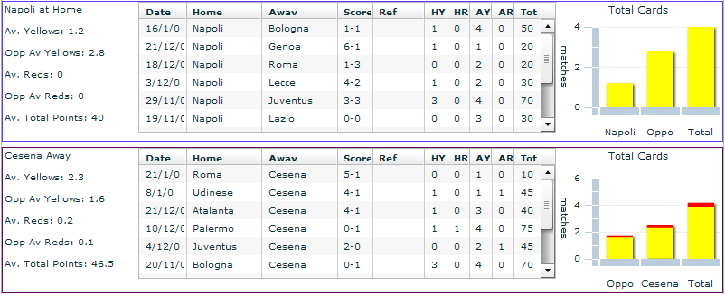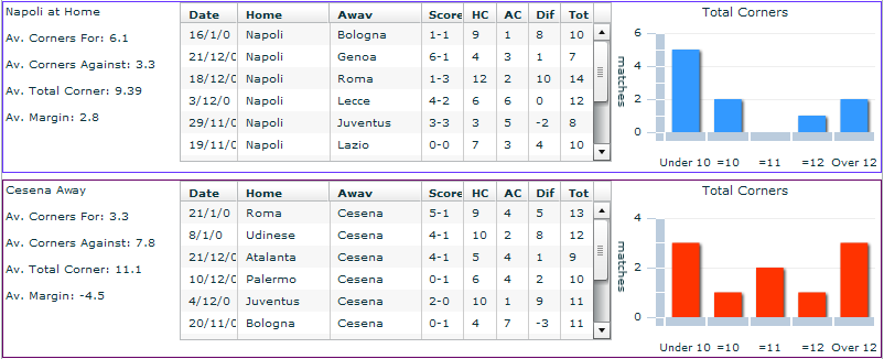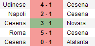 Средние показатели команда в нынешнем сезоне: Домашний Наполи - 3.4(2.1-1.3) в среднем за игру. Гостевая Чезена - 2.6(0.5-2.1) в среднем за игру.