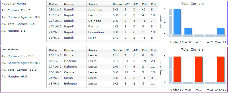 Средние показатели команда в нынешнем сезоне: Домашний Наполи - 2.5(1.5-1) в среднем за игру. Гостевой Лечче - 1.84(0.67-1.17) в среднем за игру.