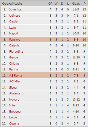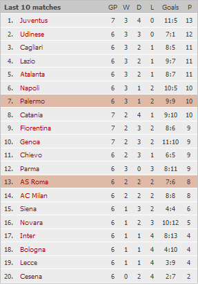 Очные встречи: 16.04.11 Рома - Палермо 2:3 (1:1)