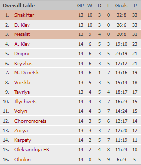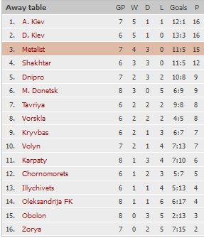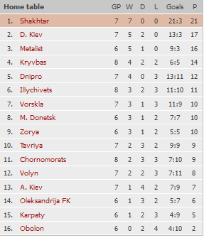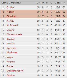 Турнирная таблица, Текущая форма Шахтера и Металлиста , Домашняя таблица Шахтера и гостевая - Металлиста.