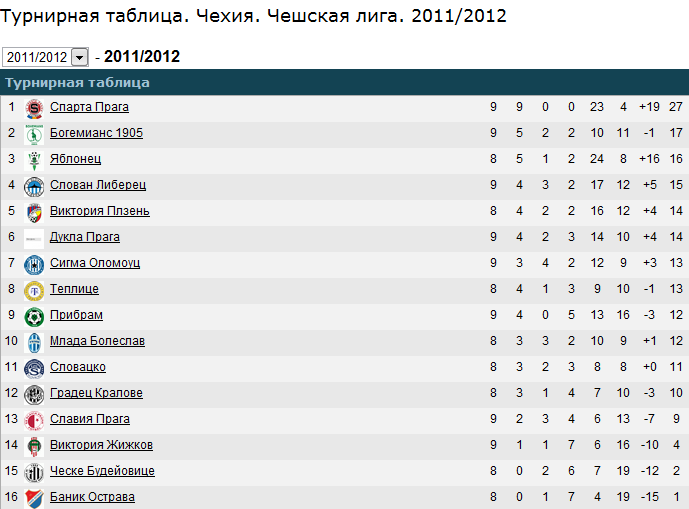Яблонец 12 матчей: 6 побед - 2 ничьи - 4 поражения