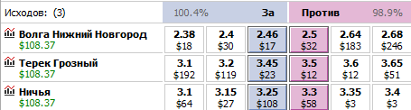 Победа «Волги» - 1.73 Победа «Волги» - 2.18 Победа «Терека» - 5 Победа «Терека» - 3.8 Ничья – 3.2 Ничья – 3.55