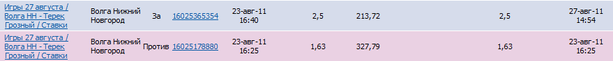 Анализ и прогноз Ещё один матч, который преподносится как дог, увидев Волгу на по 1.63, вспомнив, как уже дважды в этом сезоне победу Волги продавали поставщики догов Амкар - Волга, Кубань - Волга, а также недавний матч Томь - Терек там якобы размен очками подразумевался (обратите внимание на коэффициент на Томь к началу матча около 2.5) Все три раза доги перекупали как потом выяснялось Вообще, что касается значительной части "догов" в РПЛ, разделяю следующее мнение И. Лебедев: кто-то нагрел руки на махинациях со ставками на "Кубань" — "Волга" Так вот почесав репу, я спросил себя: А с хера ли Тереки сливаццо будут?! Денег у Кадырова хватит, чтобы купить весь Волжский персонал или взять в аренду на ночь. Положение в турнирной таблице, последние результаты, конфликт внутри команды после 6:2 от Динамо, в результате которого ряд игроков потеряли место в составе Терека и были выставлены на трансфер - всё это совершенно не располагает к очередному поражению Терека. Я бы скорее поверил в дог на победу Терека, чем наоборот. В общем, почесав репу, решил Пойду-ка я в мутной водичке рыбку половлю И влез против победы Волги на по 1.63 ( то же самое, что Х2 по 2.58)